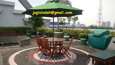 21/10/2016 Comments OffUntuk kali kedua Kemang Apartment,sebuah apartemen yang terletak dikawasan eksklusif Kemang mengadakan pemesanan kepada Joglo Indah Furniture berupa set meja payung yang ditempatkan didek kolam renang yang terletak diatas dari bangunan apartemen tersebut.