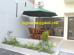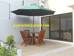 Teras rukan tersebut menghadap langsung dengan halaman yang cukup lega yang difungsikan sebagai tempat parkir.Bagi para tamu yang membawa kendaraan dengan driver /sopir pribadi,driver/sopir bisa menunggu dan istirahat meja payung taman tersebut sambil mengamati kendaraannya sehingga secara tidak langsung keamanan kendaraan akan terjaga.