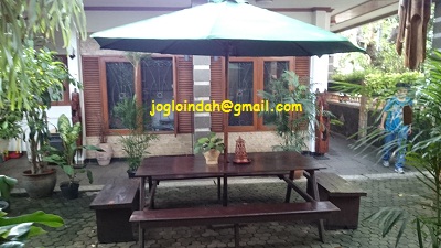 Payung taman tersebut dipasang dihalaman sebuah guest house dikawasan Cilandak Jakarta Selatan,dimana setiap pengunjung dan tamu yang duduk di set meja payung taman tersebut akan merasakan kesejukan dan kenyamanan karena set meja payung tersebut dipasang dibawah rerindangan pohon yang ada.