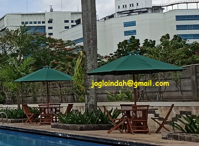 14/12/2020 Comments OffBeberapa set meja payung yang dibeli oleh pihak manajemen Apartemen Bona Vista Lebak Bulus Jakarta Selatan tersebut dipasang didek kolam renang.Sebagai tempat duduk untuk para pengguna kolam renang setelah berenang.Sebenarnya dikolam renang yang cukup luas itu sebelumnya juga sudah ada fasilitas lain berupa kursi kolam renang/sun lounger kayu jati yang merupakan pembelian dari kami,Joglo Indah Furniture beberapa tahun yang lalu. Dan pihak manajemen juga berencana akan memesan beberap unit lagi untuk kursi kolam renang kayu jatinya.
