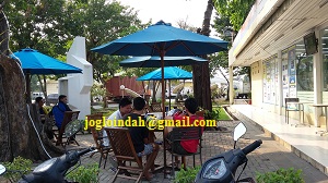Atau bagi yang sengaja berbelanja di Toko Indomaret ini pengunjung bisa duduk di set meja payung cafe ini menikmati makanan dan minuman sambil merasakan semilir udara sejuk pantai karena lokasi yang memang dekat dengan pantai Ancol.